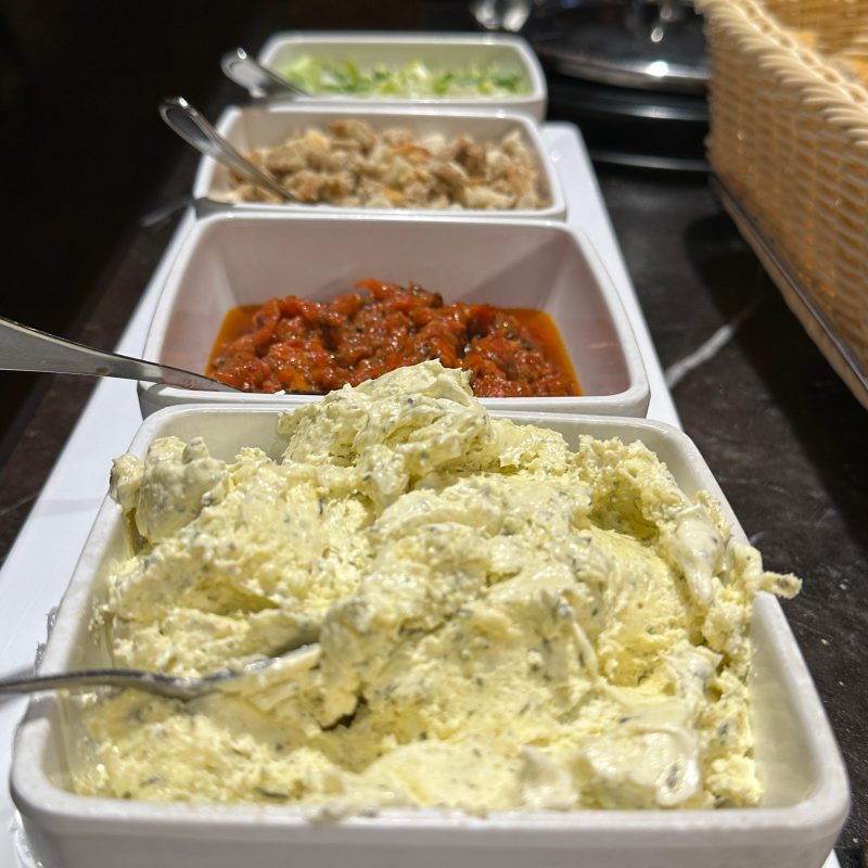 We starten met twee soorten soep, geserveerd met broodassorti, kruidenboter en tapenade. Voor de liefhebber staan er ook diverse koude visvoorgerechten klaar.